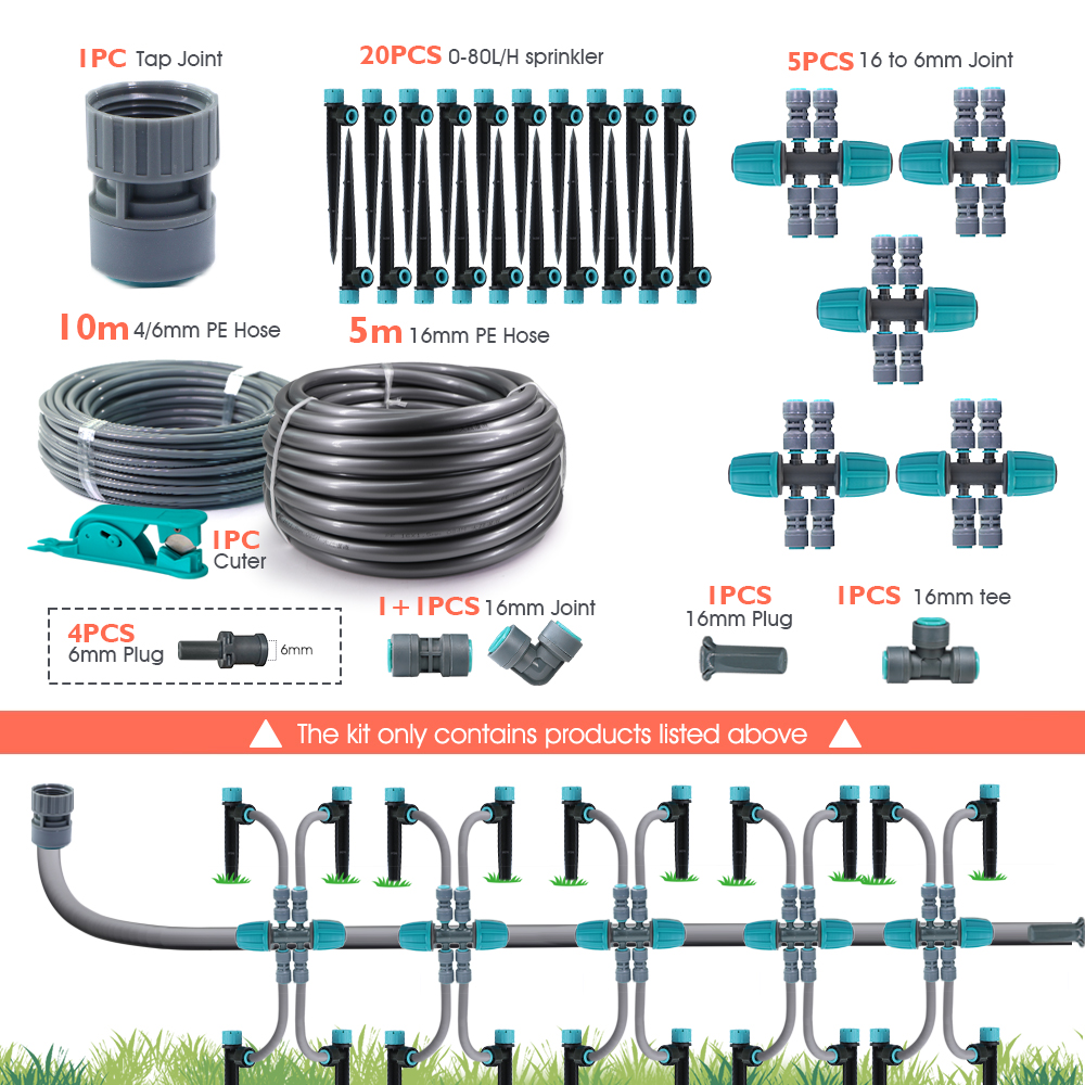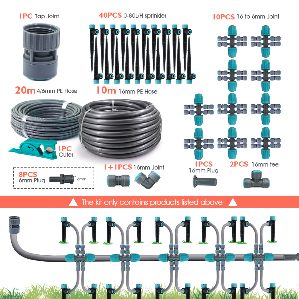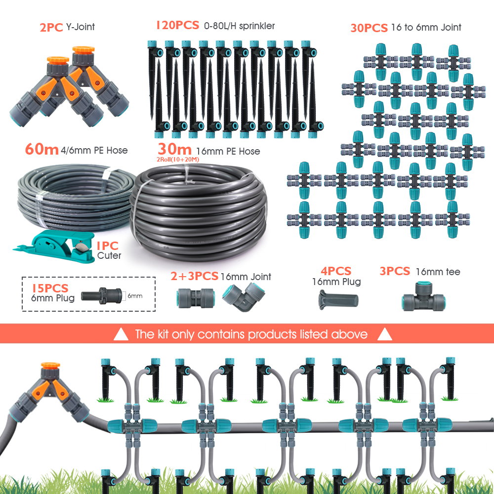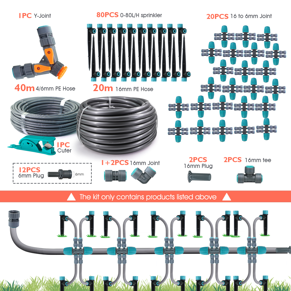 10-60M 13cm Sprinkler Garden Watering Kit 1/2" 1/4" PE Hose Drip Irrigation System 20/40/80/120Dropper Automatic Watering Plants