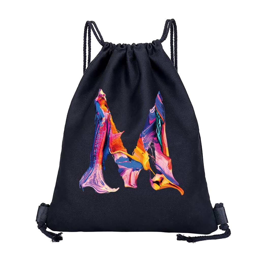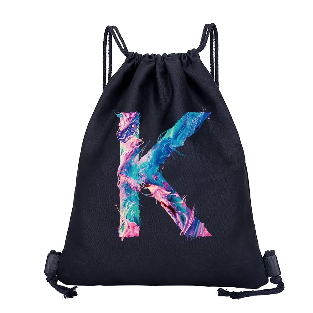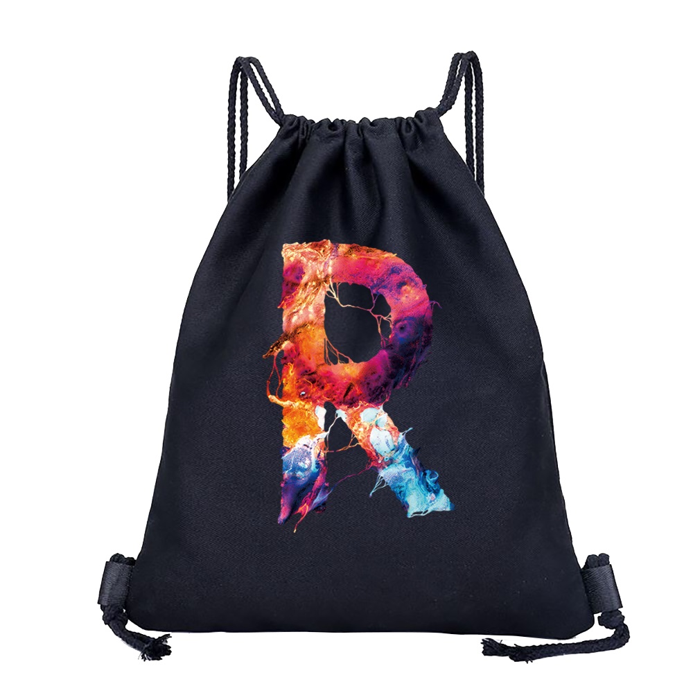 26 Initials Print Drawstring Bag Backpack Men and Women Beach Sports Travel Backpack Kid Supplies Bag Portable Sundries Bag