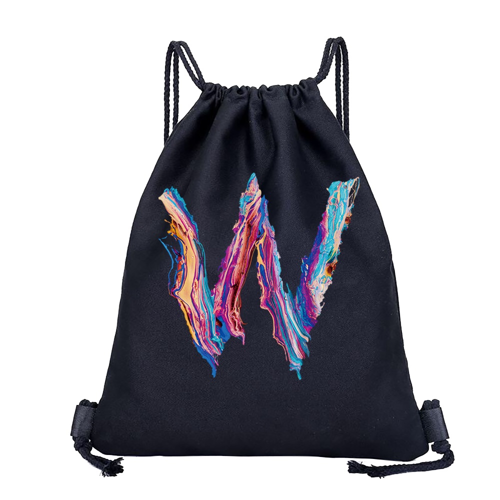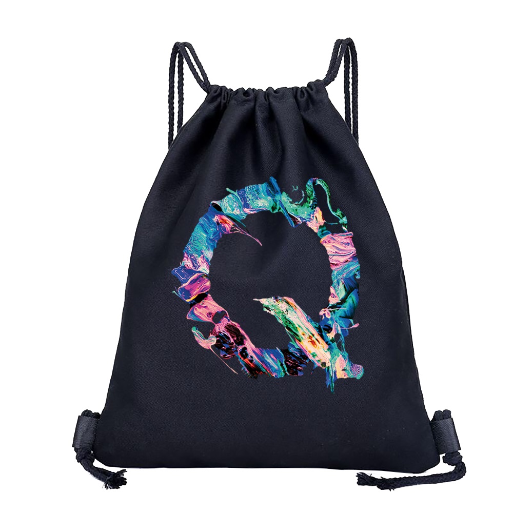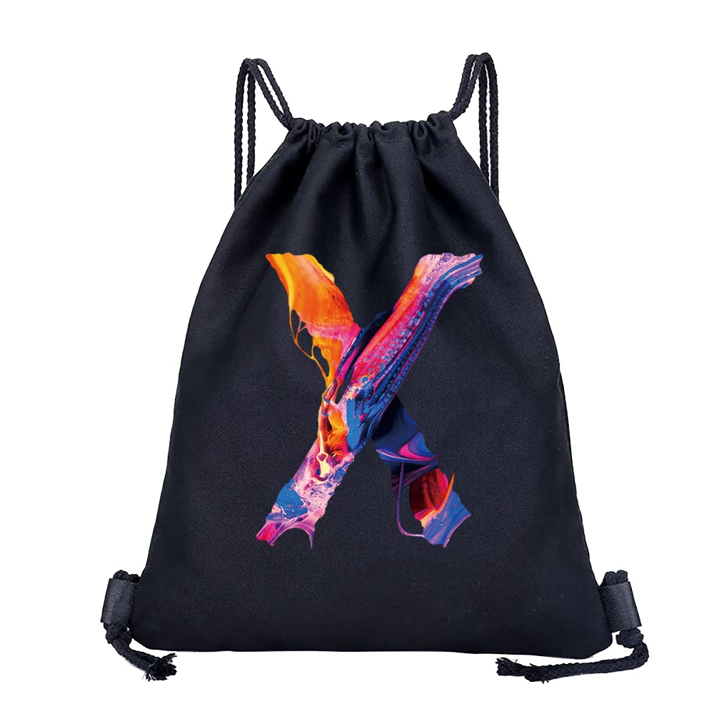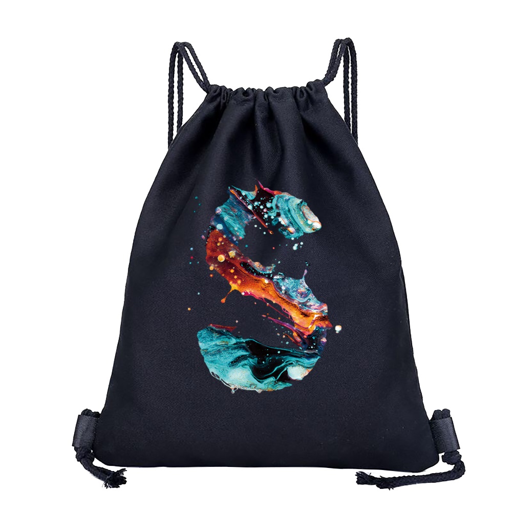 26 Initials Print Drawstring Bag Backpack Men and Women Beach Sports Travel Backpack Kid Supplies Bag Portable Sundries Bag