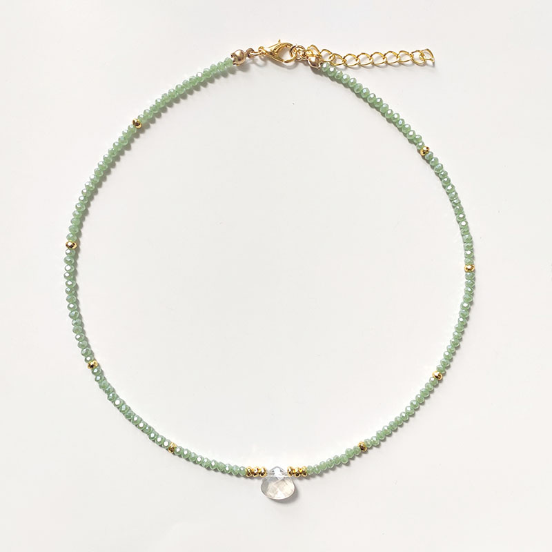 Summer Crystal Beaded Necklace Women Exquisite Versatile Neck Accessories Light Green Beadsцепочка На Шею Женская
