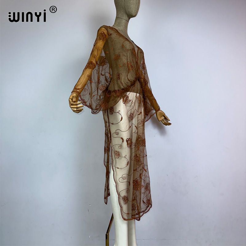 WINYI summer beach wear sexy Perspective dress boho print dress Women kaftan Bohemia Africa kaftan beach Cover Up vestidos