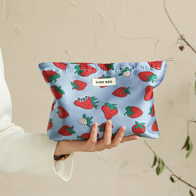 Women's Cosmetic Bag Small Blue Strawberry Portable Cosmetics Lipstick Storage Bag Commuter Coin Purse Clutch Bag Key Case